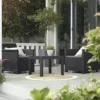 Create a picturesque garden with the charming Argos Home Cube patio set. In a sleek black rattan-effect, its designer look is sure to impress your guests. The chairs tuck perfectly underneath the table to make this a fantastic space-saving set. Ultra-modern, it is ideal for the whole family or a garden party. The table has a glass top, perfect for setting atop your drinks and snacks.