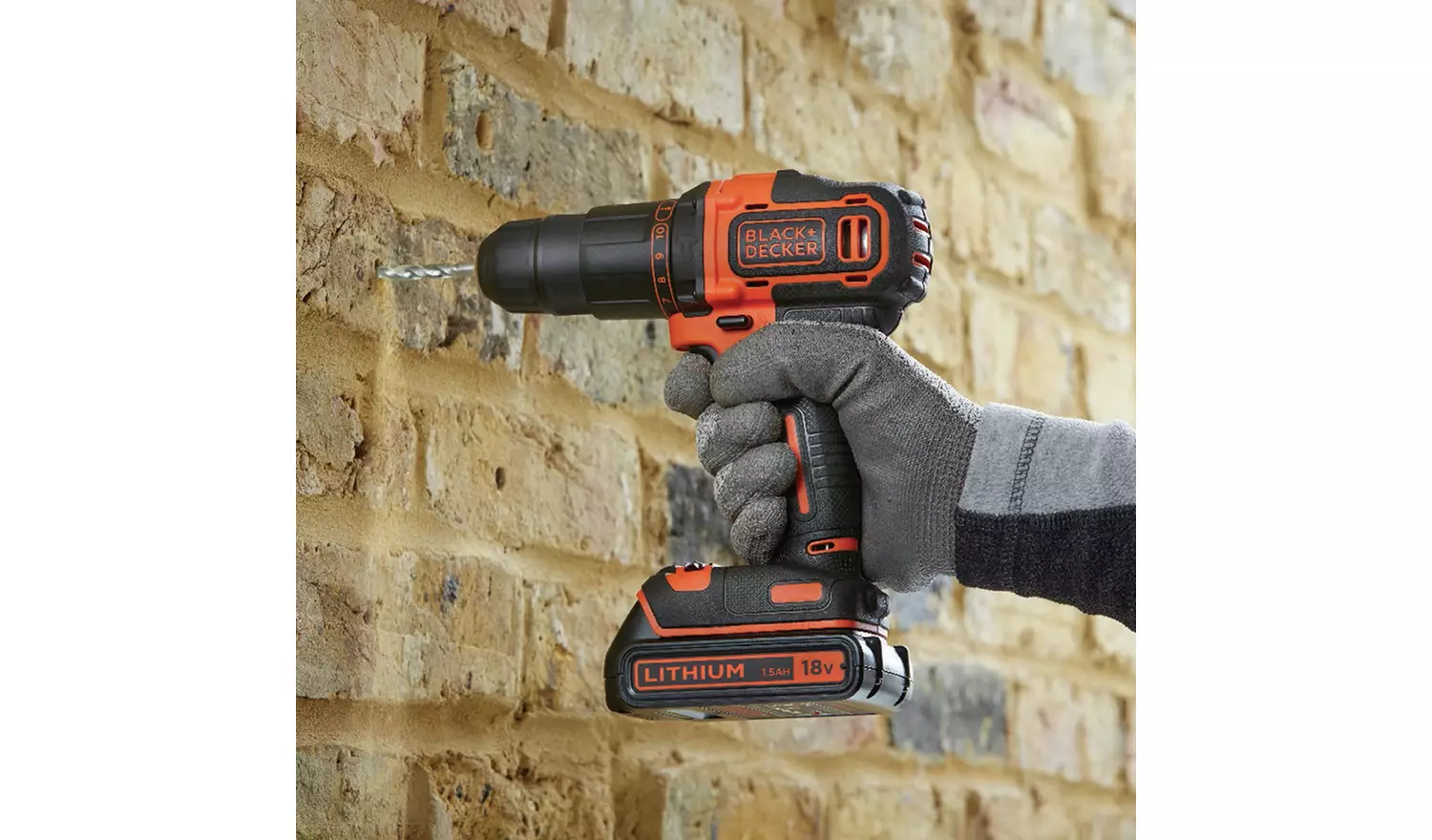 Black + Decker 18V Cordless Hammer Drill with Battery