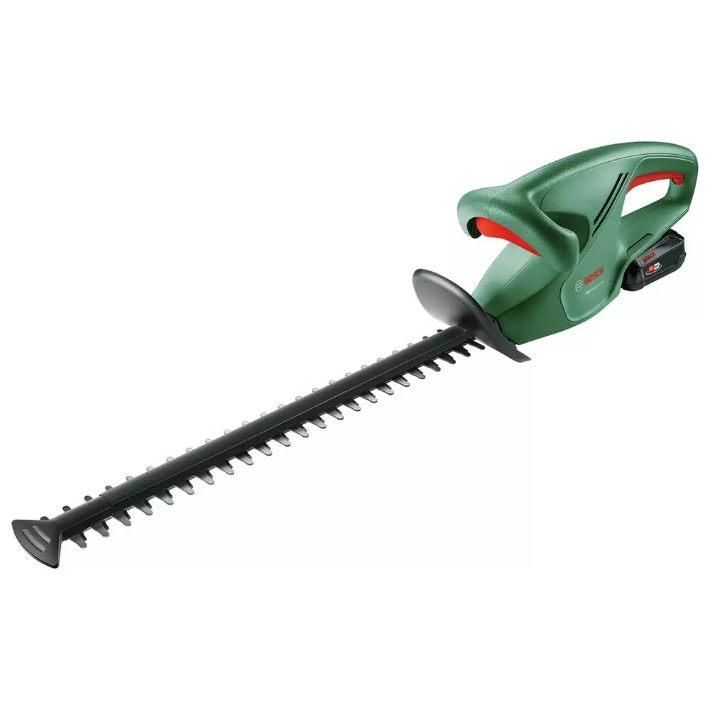 The Bosch EasyHedgeCut 18-45 is perfect for maintaining and trimming small and medium sized hedges. It is exceptionally lightweight at 2.3 kg with an ergonomic design for comfortable handling in various working positions, for reduced strain on the upper body when completing longer tasks.