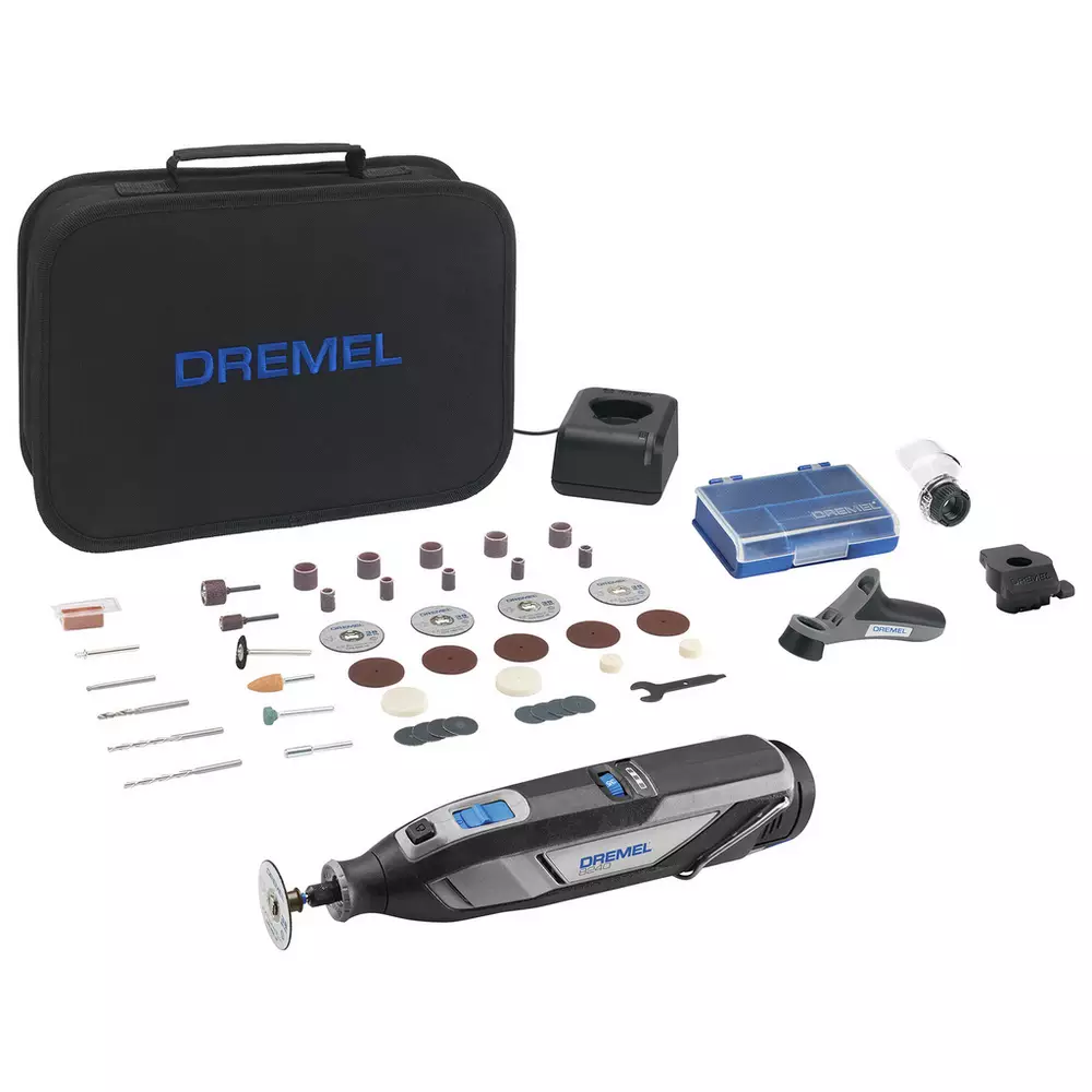 Maximum power for your high-duty projects. Tackle the toughest precision jobs with this 4250 Multi-Tool kit, including 45 accessories, 3 attachments, and two storage solutions. Carry your Dremel 4250 Multi-Tool around in its lightweight case or hang it on the wall with the tool holder to quickly access it. EZ Twist nose cap for tool-free accessory changes. With its intuitive button placement and rubber soft grip, you will be in total control over your demanding projects.