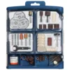 - Includes 15: 2x High Speed Cutters (4.8/6.4mm), 1x 2mm Diamond Wheel Point, 1x 0.8mm Engraving Cutter, 1x 19mm Brush, 5x 26mm Polishing Wheels (3x13mm, 2x26mm), 1x Polishing Compound, 1x Mandrel, 1x 6.4mm Sanding mandrel, 2x 6.4mm Sanding Bands (Grits 60/120).