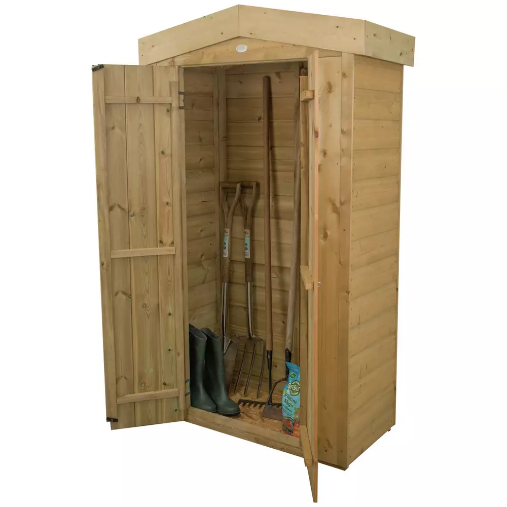This Tall Garden Store from Forest provides 750 litres of storage capacity, has a relatively small footprint and a roof height of just under six feet – perfect for keeping long handled gardening tools and other garden equipment neat and tidy. Made in the UK from Pressure Treated traditional overlap boards.